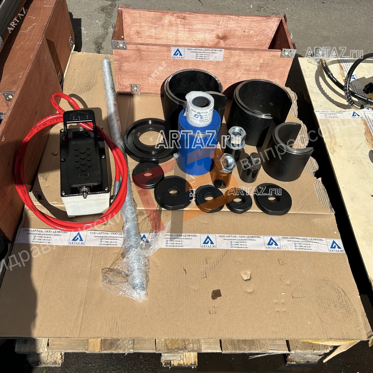 ARTAZ гидравлический выпрессовщик пальцев и втулок 50 т, 70 МПа, с пневмогидравлическим насосом, переносной ВСГ40(50)П-Пг