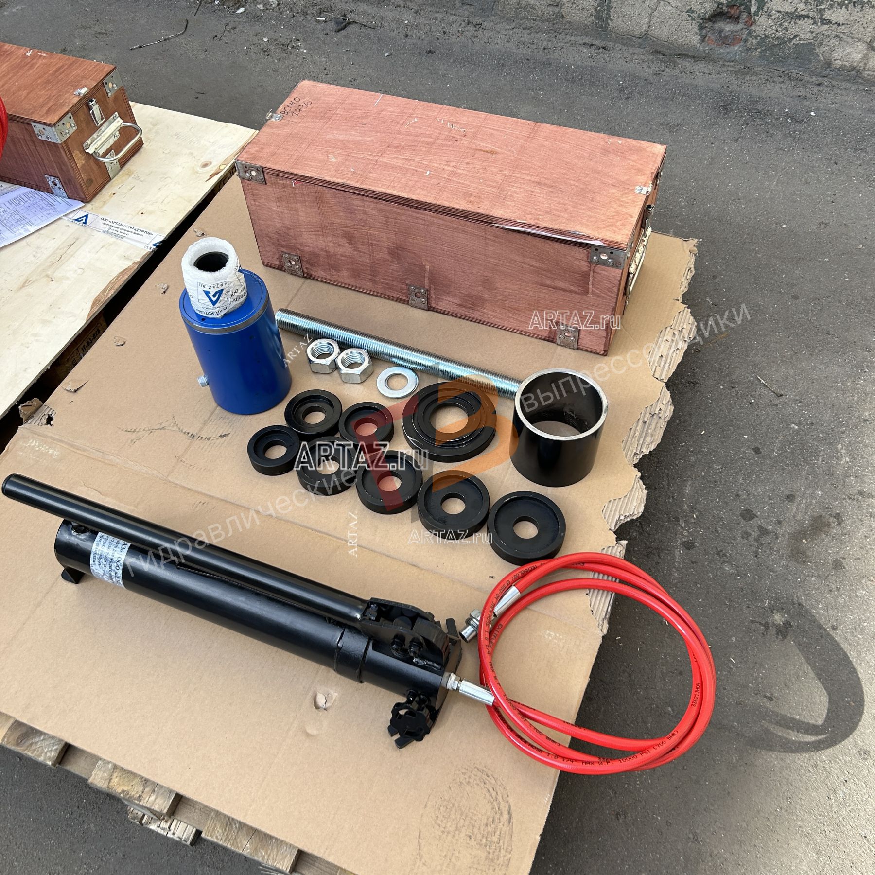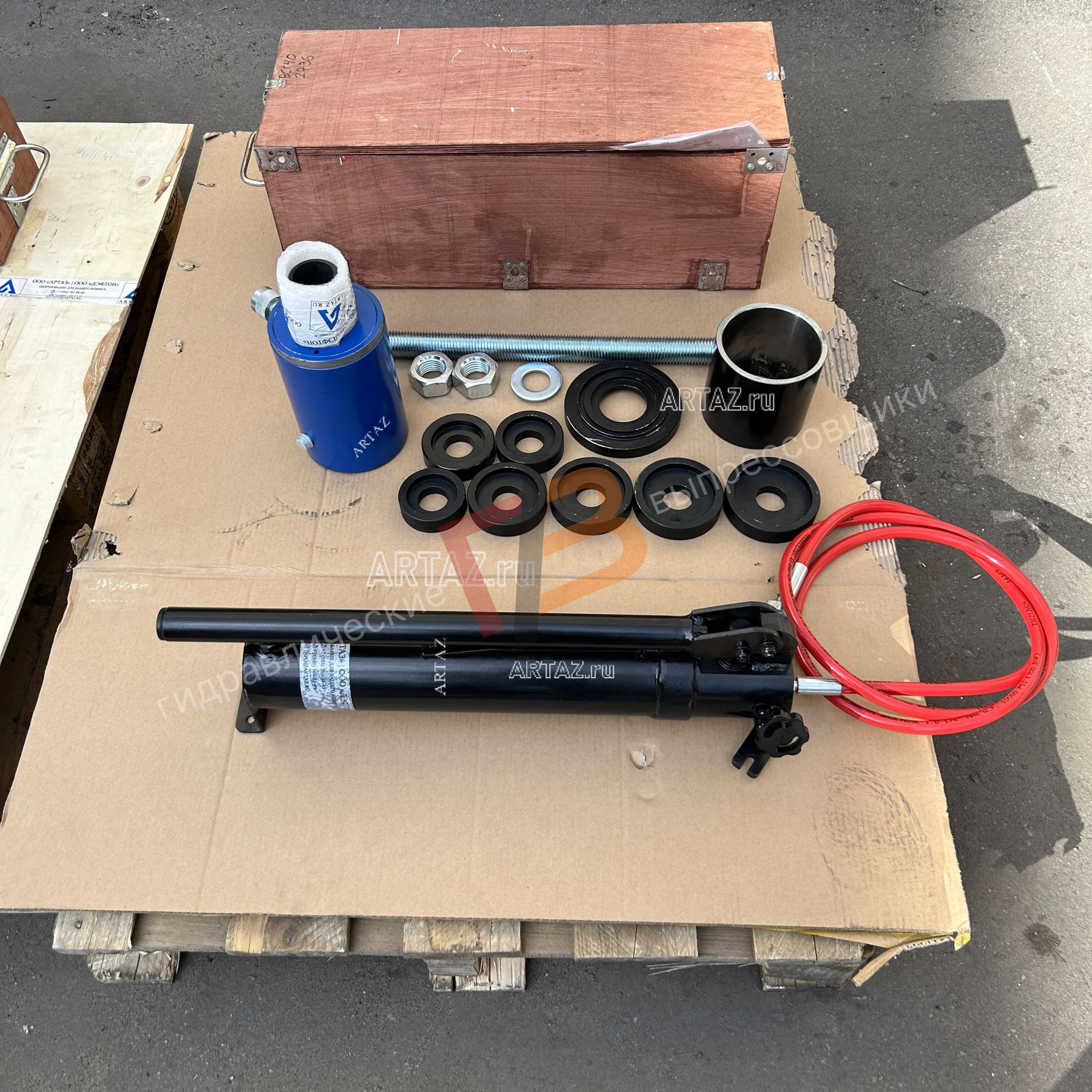 Гидравлический выпрессовщик сайлентблоков ARTAZ 50 т ВСГ40(50)-Рг2, переносной, с ручным насосом, в кейсе